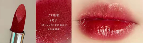 TF银管07 STUNNER:宝石鸽血红!这只真是致命喜欢!太好涂了吧?这个红宝石鸽血色又浓郁又显白!而且完全不挑皮~厚涂就是复古美人~感觉要断货emmm