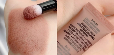 Nyx PPL01:cool intentions 海绵头唇釉:裸色系杏仁色,涂的时候需要挤压,海绵头上嘴超级软乎,很喜欢~丝绒质地不拔干,,显色度稍微有点弱,需要深一点的颜色可以叠涂!