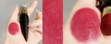 001m复古红:丝绒哑光雾面感,磨砂管身,高级感十足,butbut对嘴唇容易起皮的姐妹不太友好,秋冬季节涂它我一般要先敷一会凡士林,白皮妹子涂简直是复古感拉满!!!