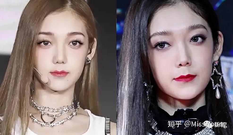 脱离节目之后,换了偏浅的发色搭配大红唇,视觉集中在下面部,反而加重了她的凸嘴问题。