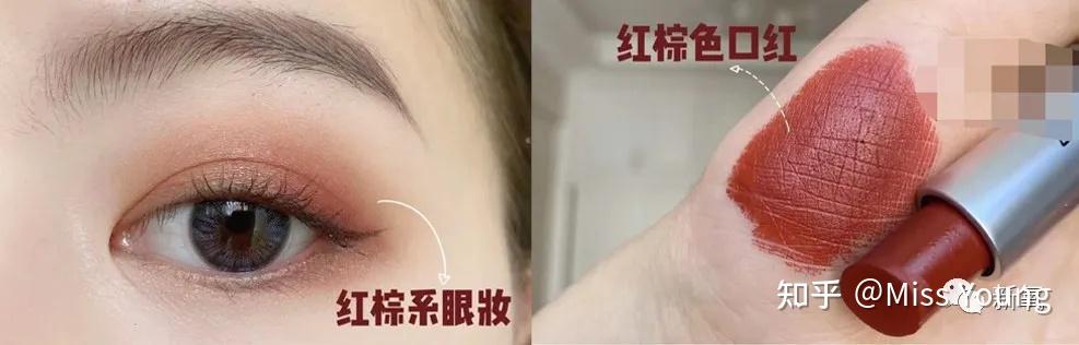 一般博主都会建议大家选择同色系的眼影搭配口红。
