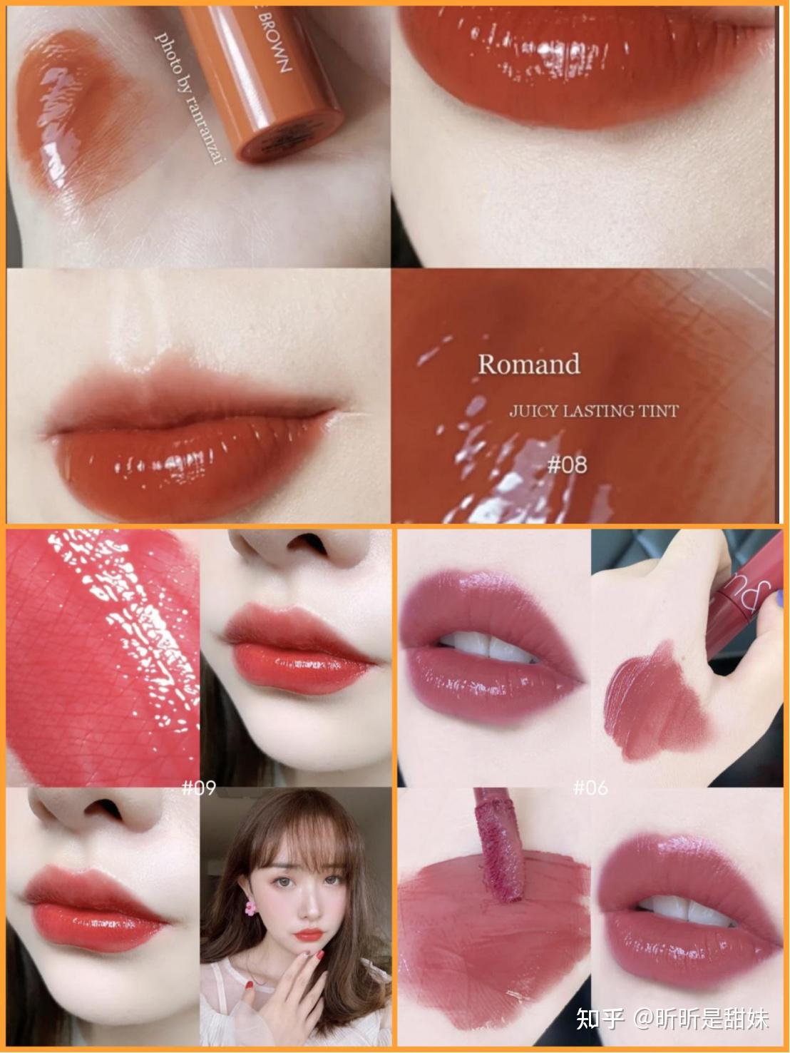 09荔枝色,超温柔可爱的嘟嘟唇,这三款一年四季都好搭哦,一点都没有攻击性,光泽感刚刚好,还有甜甜的香气,唇釉成膜,颜色超嫩,染唇后的颜色也很好看,唯一的缺点就是卸起来费力。