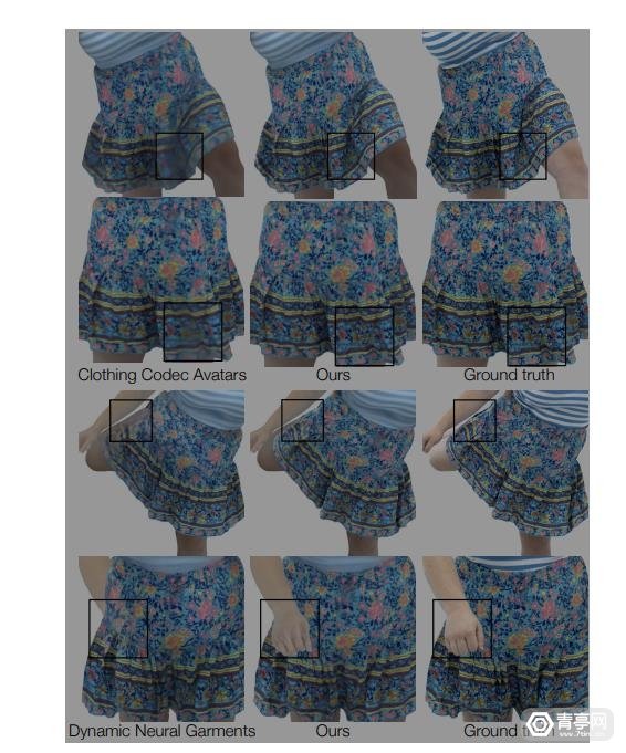 从演示视频来看,Codec Avatars的服装模拟已经可以做到足够细节,肤色变化(晒痕),以及身上服装的纹理、褶皱和花色,整体建模、动态渲染效果等细节足够优秀,远超现有的各类Avatar方案。