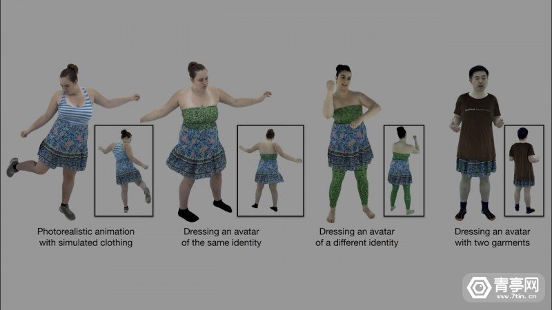 细节方面,该方案通过神经渲染模拟服装的物理变化,并通过相同的捕获序列来构建全身姿态和服装模型,好处是不仅可以将捕捉到的服装模型穿戴在其他虚拟形象上,还可以在同一个虚拟形象上叠加多种不同的服装动画。另外,还可以合成新的3D视图和动态阴影效果。