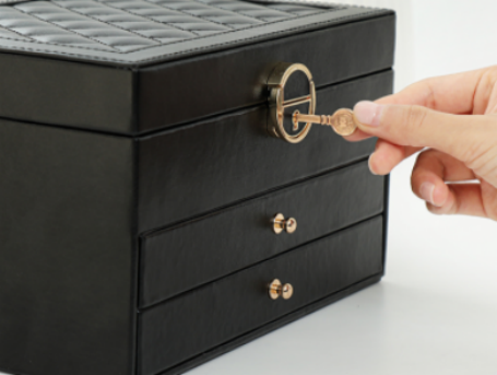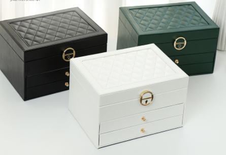 3、京漫多功能首饰盒大三层带锁皮质珠宝首饰收纳盒